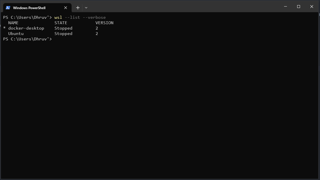 Running this command for me showed the Ubuntu and docker-desktop distros.